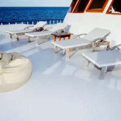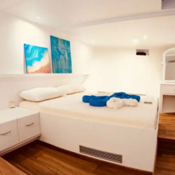 The Blue Shark II Liveaboard in the Maldives is a great choice for an unforgettable experience exploring one of the world’s premier diving destinations. This 31.8-meter/105-foot-long vessel accommodates 20 passengers. The lower deck offers 5 standard cabins with double beds and 3 deluxe cabins with a double bed. There is 1 standard cabin with a single bunk bed on the main deck. On the upper deck, guests will find 2 super deluxe cabins with double beds. All cabins have individually controlled air-conditioning and en-suite bathrooms with hot and cold water. There are 5 outdoor areas with deck chairs and shades, while indoors is an air-conditioned salon where meals are served buffet style, along with a lounge bar salon boasting a 40″ TV, hi-fi system, and a DVD player.