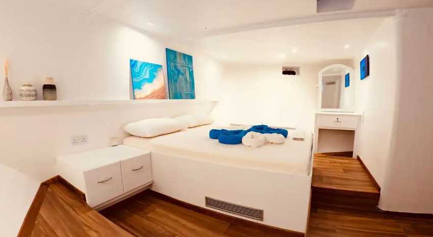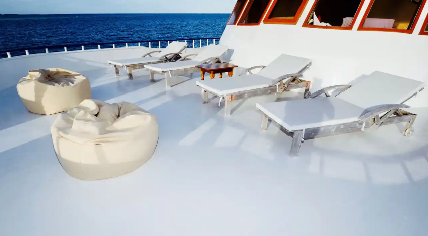 A separate diving dhoni and dinghy accompany the Blue Shark II to carry dive gear and divers to and from the boat. Guests of the Blue Shark II will enjoy access to remote uninhabited islands and welcoming fishing villages. Several exciting activities are available, like night fishing, BBQing on deserted isles, island hopping, snorkeling, and wave surfing (on request).Â